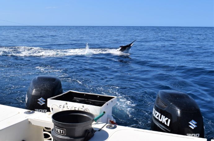 Now starts the experience of live bait slow trolling in the Northern hemisphere’s number one fishing location for Black Marlin. The Black Marlin we catch and release, weigh from 300 to 500 pounds, but we land many Blacks that are larger. Different times of the year will change our tactics and the probabilities of species caught.