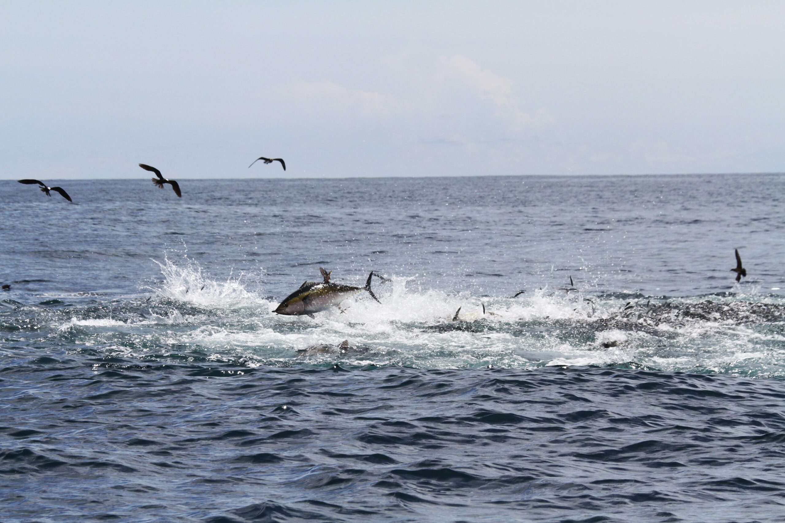 Our dedicated and knowledgeable captains will in continuing the run locate more birds. Finding Bonita, these fill our tuna tubes for live bait trolling on arrival at Isla Montuosa or the Hannibal Bank. These locations provide variations in the surface conditions such as ripples, rips, or tide lines that may indicate changes in water temperature, salinity, clarity, or current.