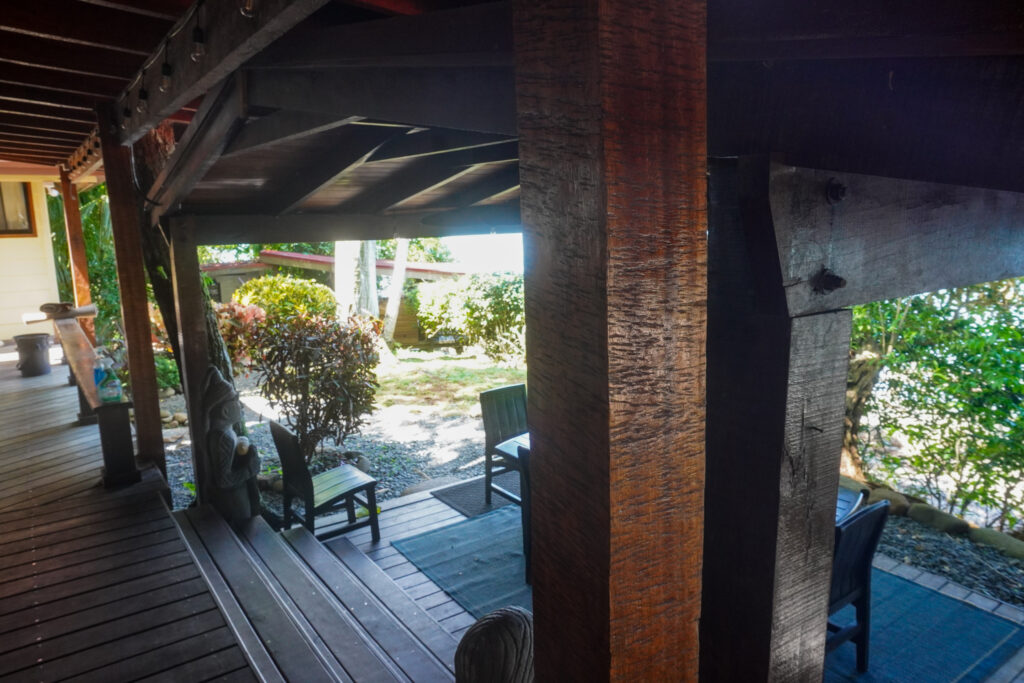 The beams that support the dining room, bar and cabins were harvested sustainably- here on the island. We have a guy who runs an Alaska mill. He planes rough cut timber from the trees that we harvest.