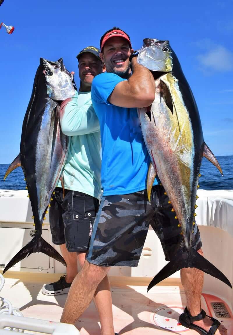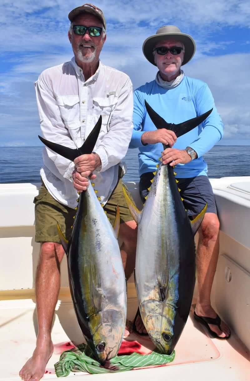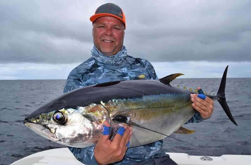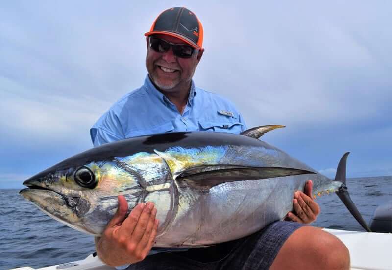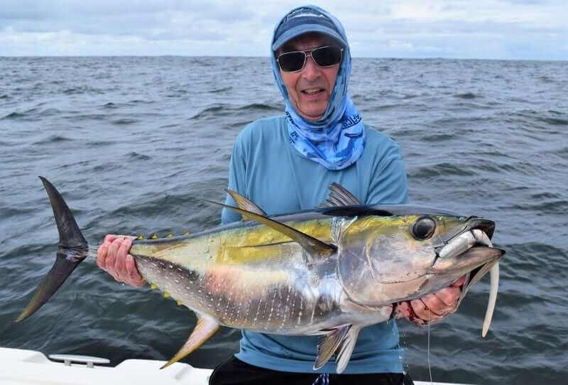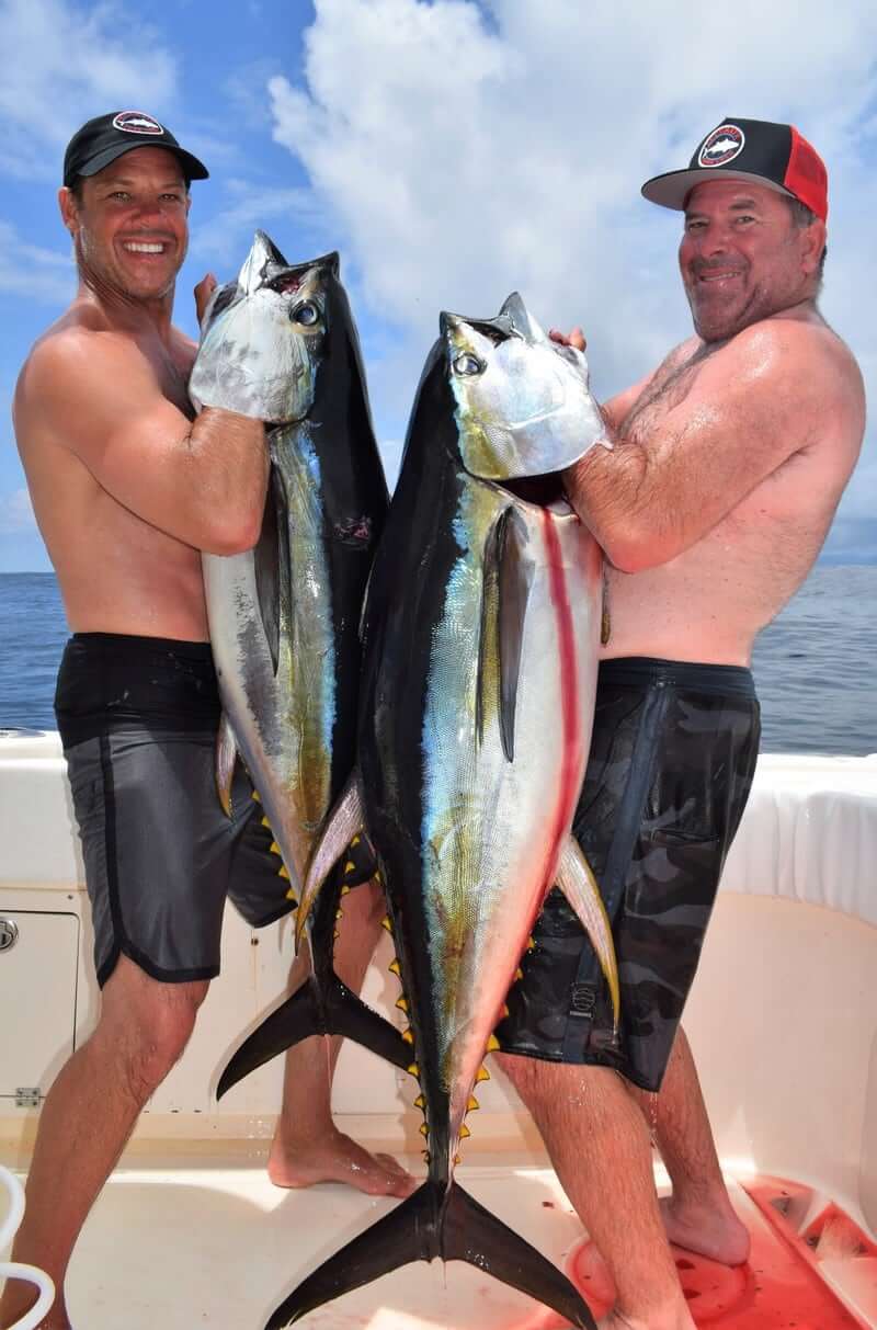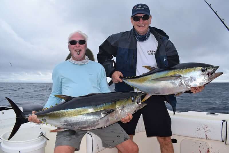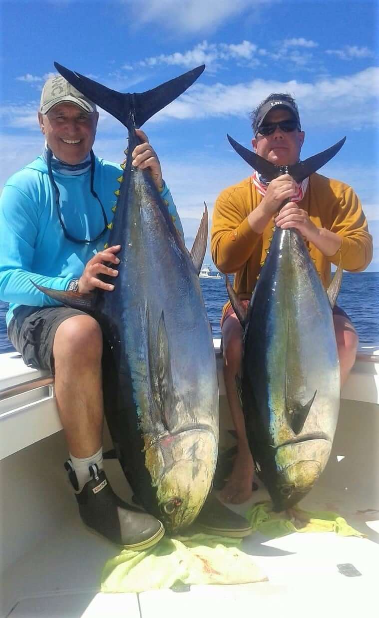 Both repeat clients…Gary and Jay teamed up for a few days offshore with us again and they timed this trip just right! We did have a couple of days with some inclement weather but that didn’t stop the Tunas from biting! We got into some pretty exciting action offshore getting in front of the Porpoises herding bait as we pitched live baits, casted jigs and swim baits to big Tunas crashing the surface! Another great time with Gary and Jay. Thanks so much for the continued business guys!