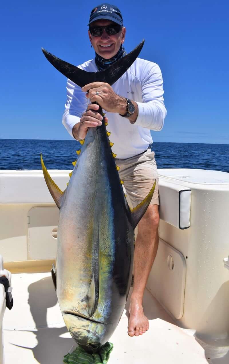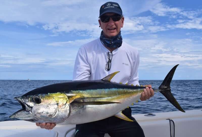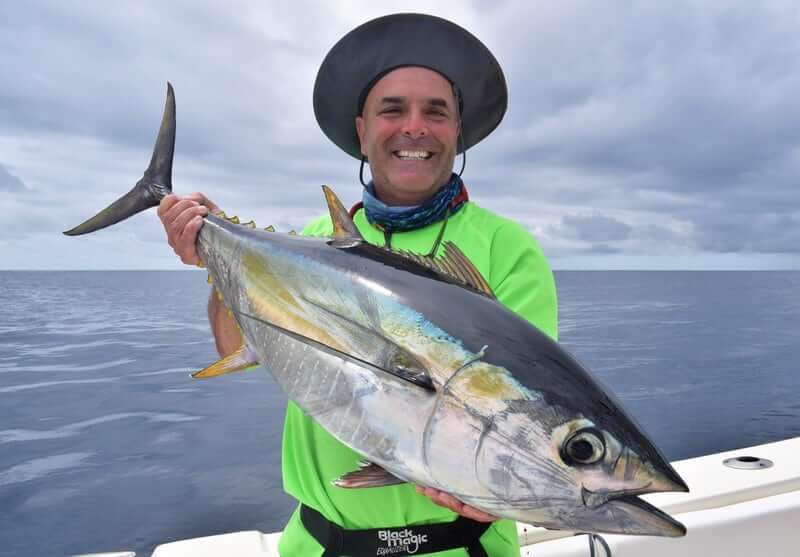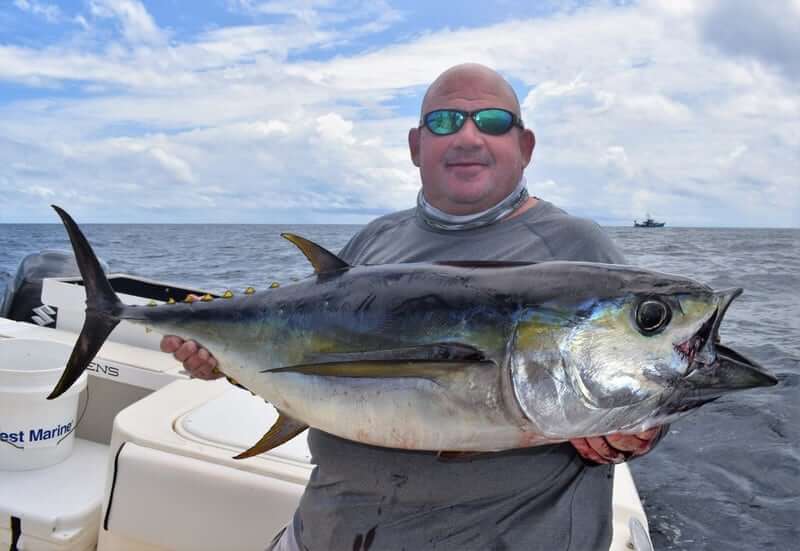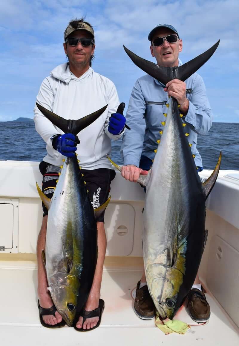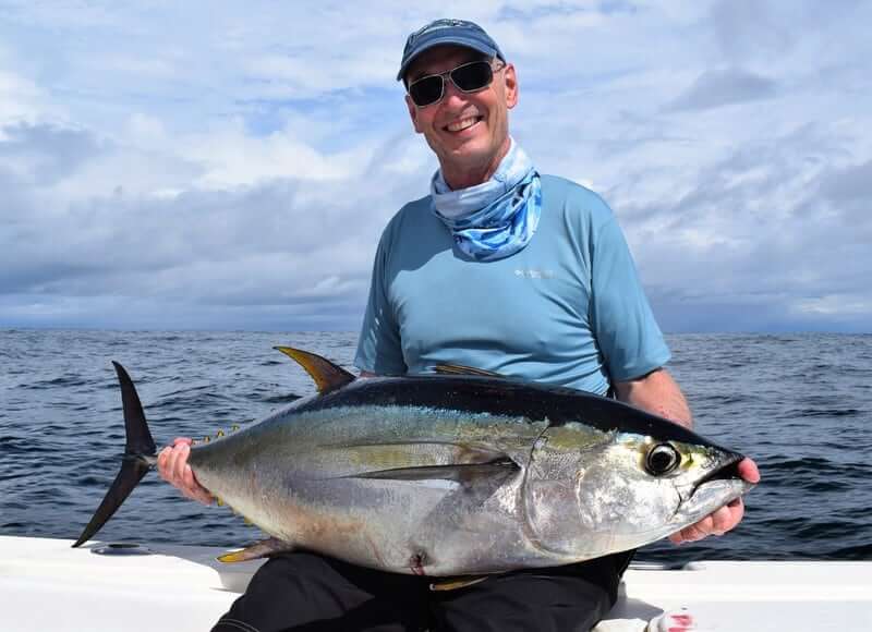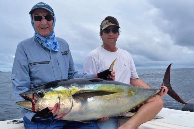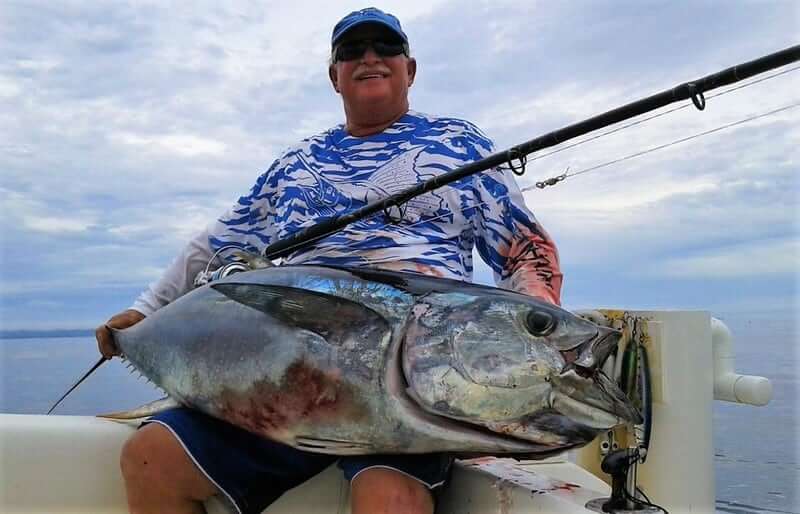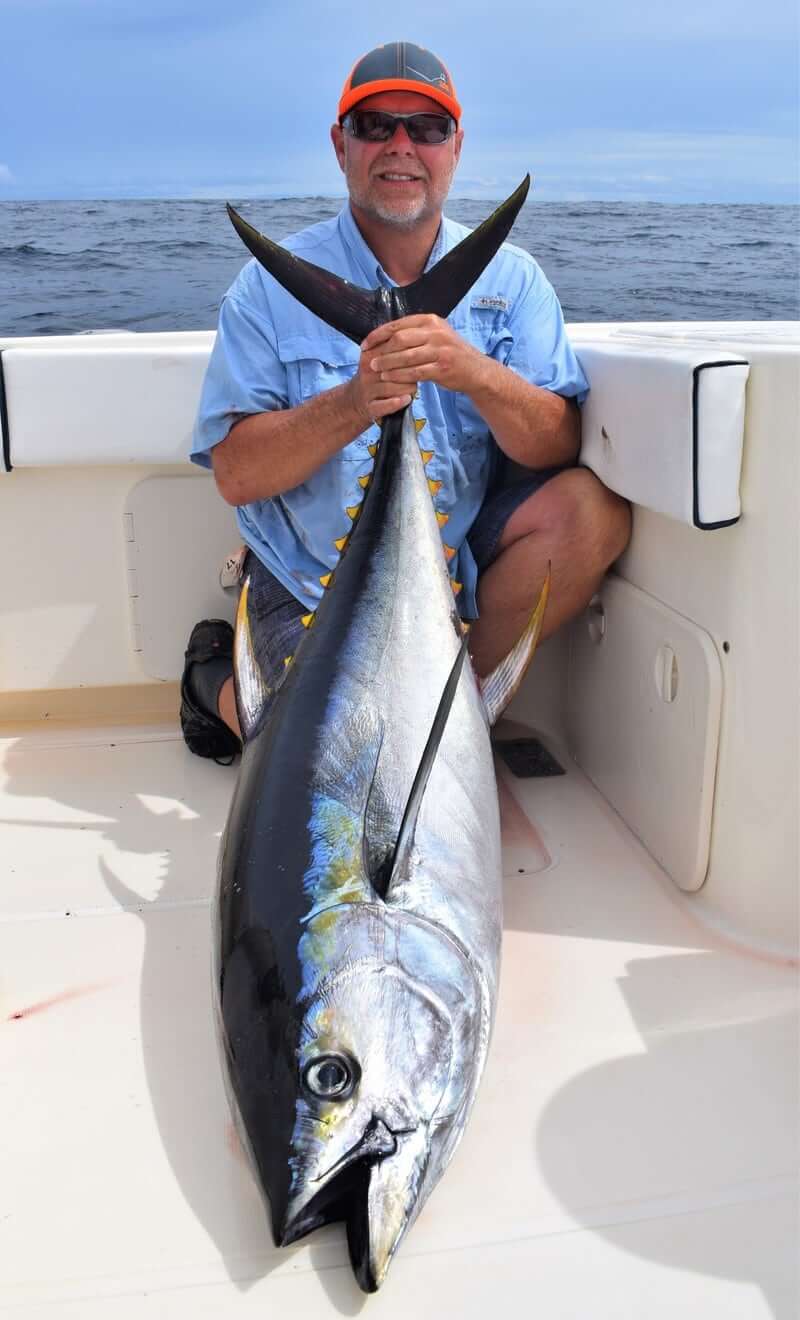 Both repeat clients…Gary and Jay teamed up for a few days offshore with us again and they timed this trip just right! We did have a couple of days with some inclement weather but that didn’t stop the Tunas from biting! We got into some pretty exciting action offshore getting in front of the Porpoises herding bait as we pitched live baits, casted jigs and swim baits to big Tunas crashing the surface! Another great time with Gary and Jay. Thanks so much for the continued business guys!