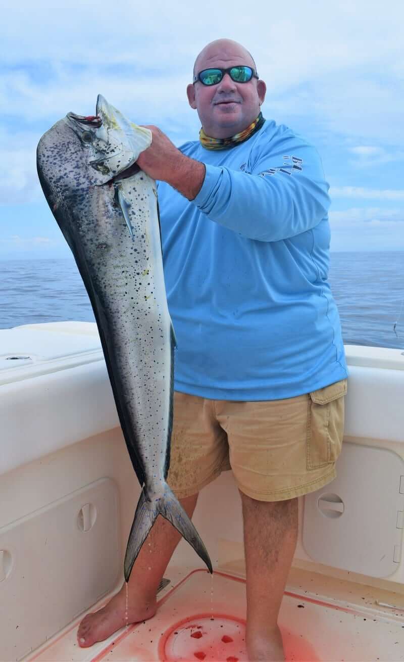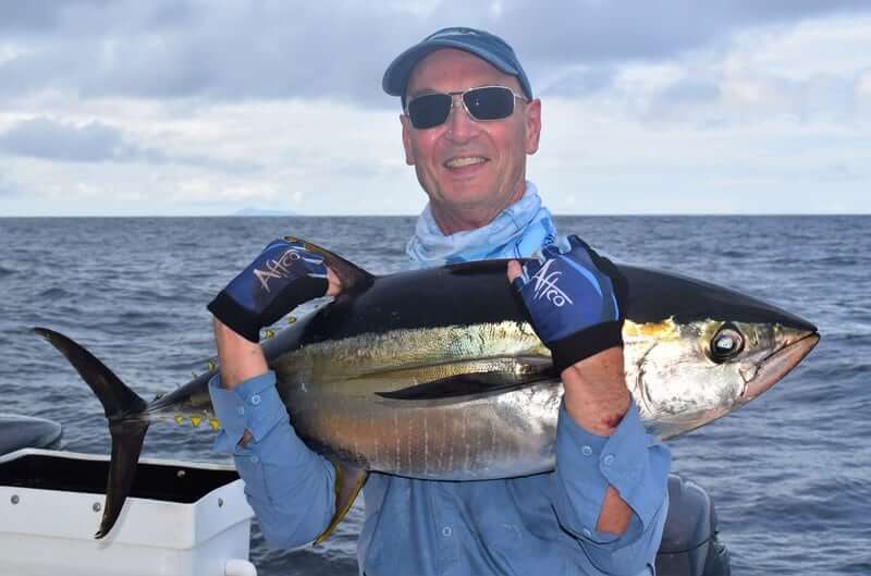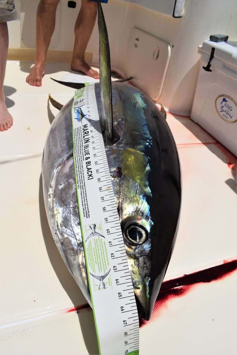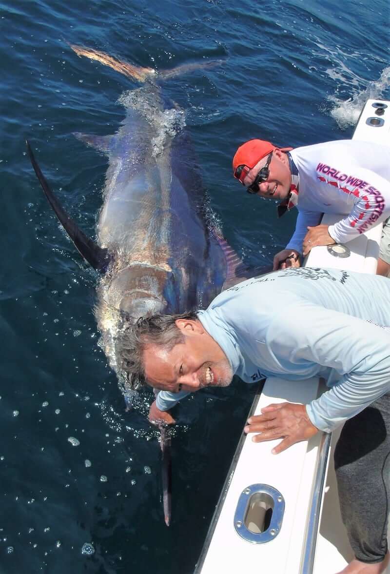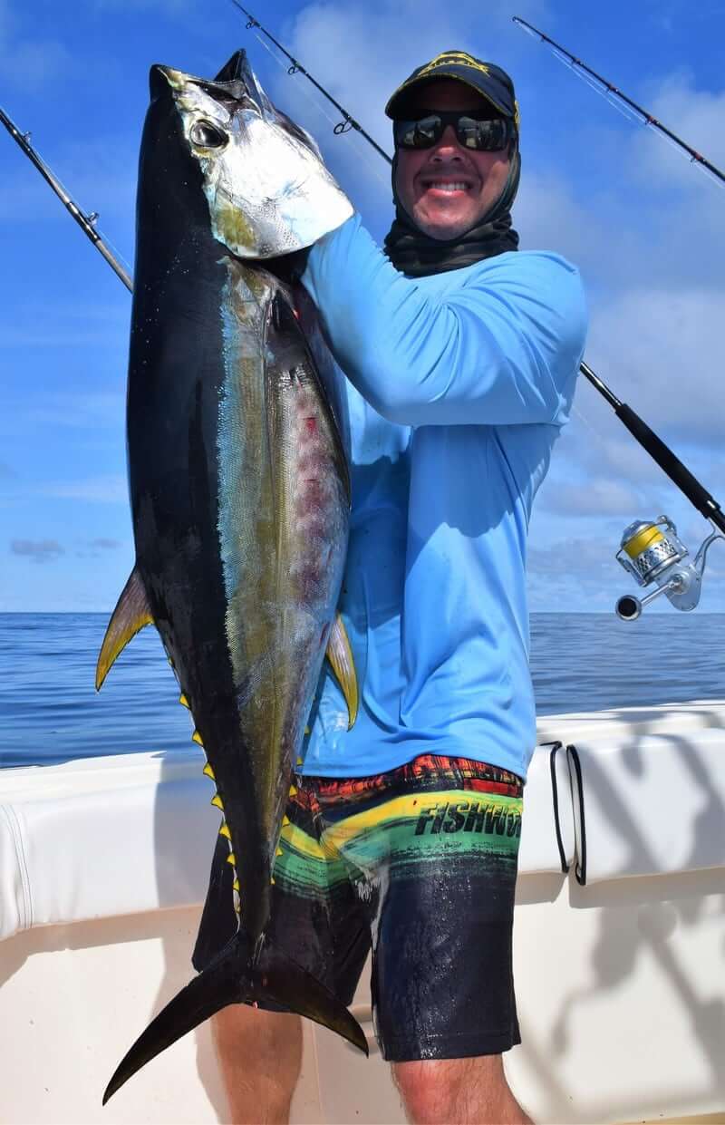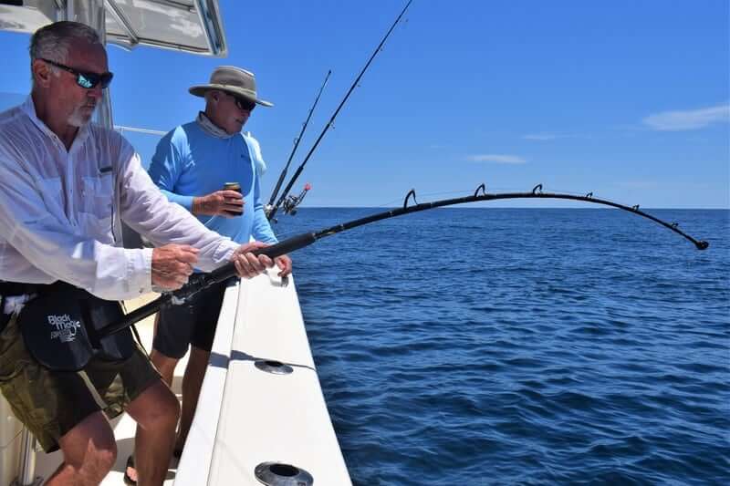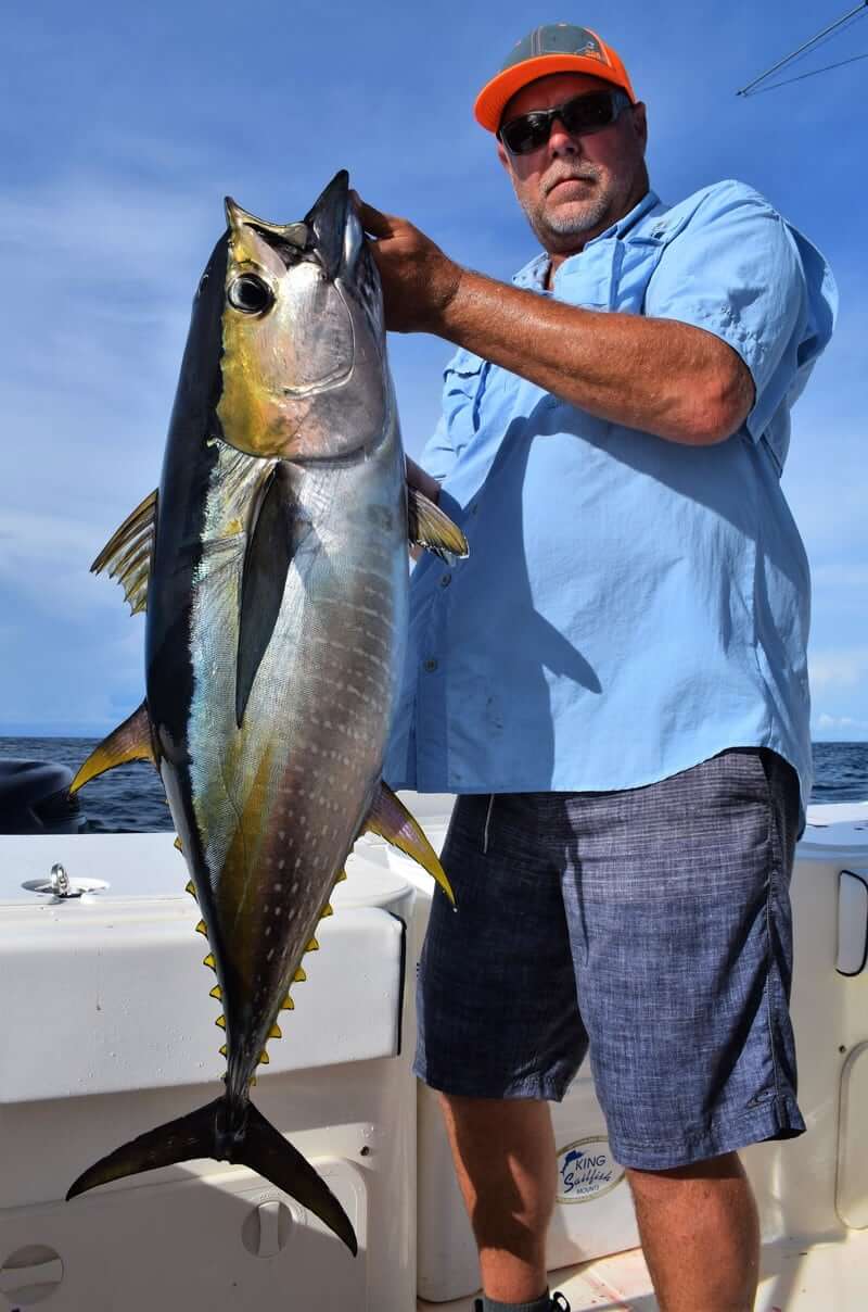 Both repeat clients…Gary and Jay teamed up for a few days offshore with us again and they timed this trip just right! We did have a couple of days with some inclement weather but that didn’t stop the Tunas from biting! We got into some pretty exciting action offshore getting in front of the Porpoises herding bait as we pitched live baits, casted jigs and swim baits to big Tunas crashing the surface! Another great time with Gary and Jay. Thanks so much for the continued business guys!