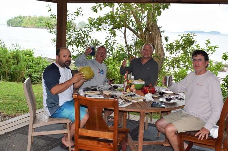 Next up was the group from Washington state and Indiana brought by coolest heart surgeon I have ever met Dr. Chris! Chris’ buddies Tim, Jeff, Shane, and Tad were all pretty cool too. There was definitely a bunch of good karma in this group that paid back with some good luck with the fish! Not only did Tad get a 267 pound monster Yellowfin Tuna (biggest of the year)…Jeff and Shane caught and released a monster 500 pound Black Marlin…and they also caught a bunch of Tunas and Roosterfish among many other species! Speaking of good karma…the morning we caught the monster Tuna we got to the spot we were about to fish and noticed a live lizard standing on top of a big floating log. We decided to save him…ran over to the log, used our net to capture the poor guy, and put him in one of the compartments with some fresh water and lettuce. Then…not 10 minutes later…we hooked up on Mr, BIG! Once we got back to the island we released him into the jungle behind the lodge. Captain Tatin ran the Scandalous, with his mate Pucho, and did a really great job as usual catching fish and taking care of the clients. Thanks for the business and awesome trip BROTATOCHIPS!