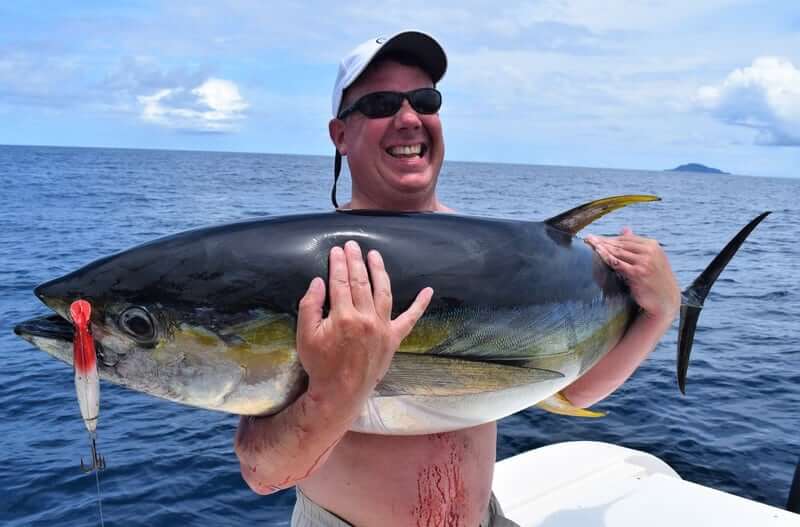 May/2017 Panama Fishing Report – May 2017 here at Sport Fish Panama Island Lodge was nothing short of awesome! We were super busy hosting 6 groups and fished 24 days here from our upscale private island lodge located 12 miles off the Pacific coast of Panama in the Gulf of Chiriqui! Once again the Yellowfin Tuna action was RED hot. Our clients caught multiple Tunas over 200 pounds and we ran into some crazy Tuna busting action offshore on many occasions. It wasn’t just all Tuna…we also caught over 20 other other species…at least that’s how many I was able to count in all of this month’s photos! And Chef Lee dazzled the clients with his usual awesome culinary skills preparing the few fish that we didn’t release.