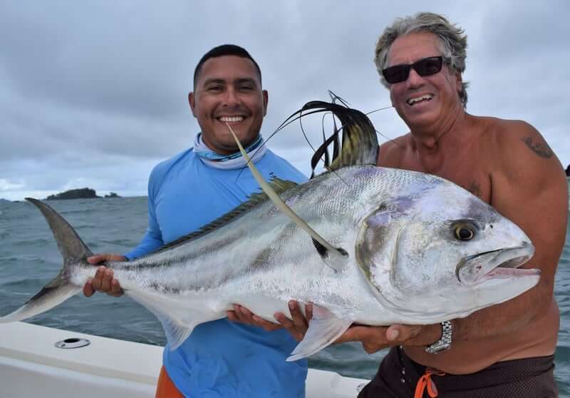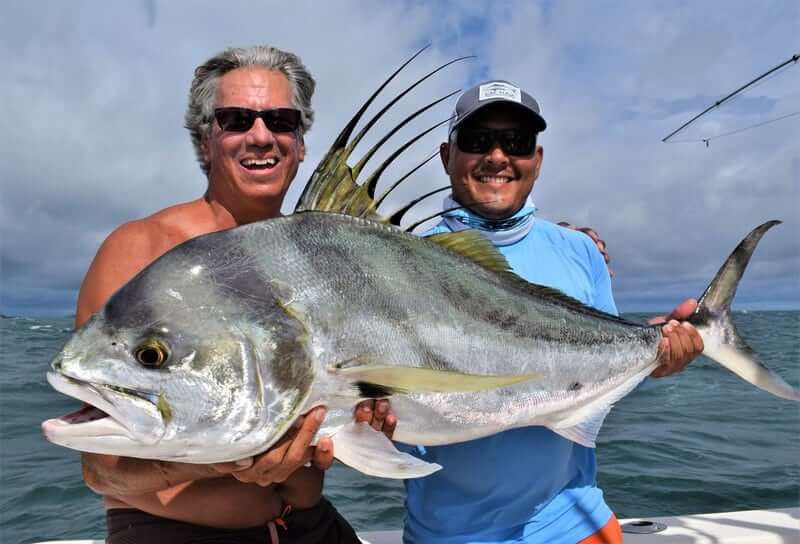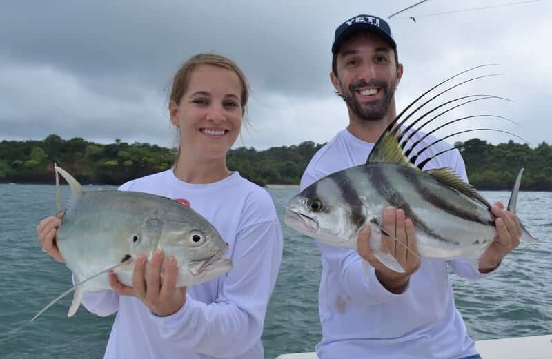 Nov/2017 Panama Fishing Report con’t – One day we fished with our buddy Chris and his wife Teresa from Central American Fishing and again the weather sucked. But we did do pretty good fishing though! Again the wind was blowing and rain was coming down but we got a few nice fish! Chris and Teresa caught an impressive African Pompano, a couple of Roosterfish, Jack Crevelles, and some nice Spanish Mackerels…all just a stone’s trow from the lodge here. Sorry the weather sucked guys…but I’m sure we will see you back! Thanks so much for the business!!