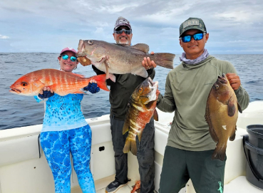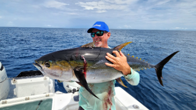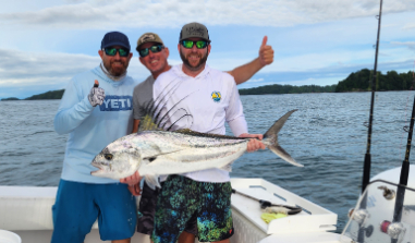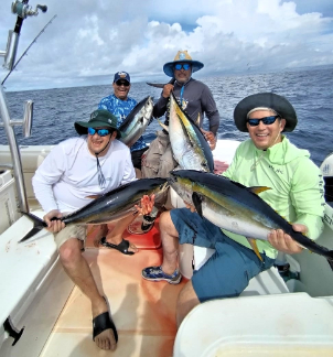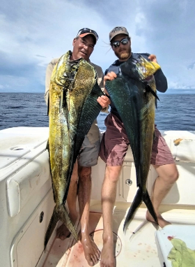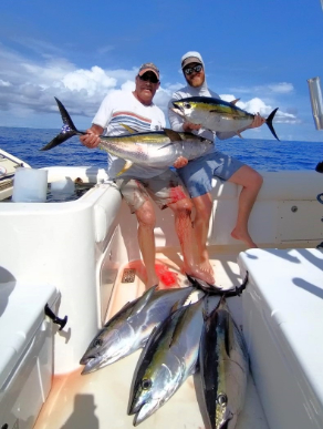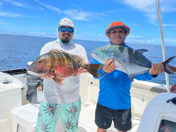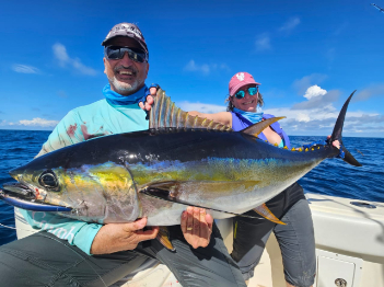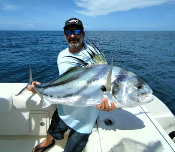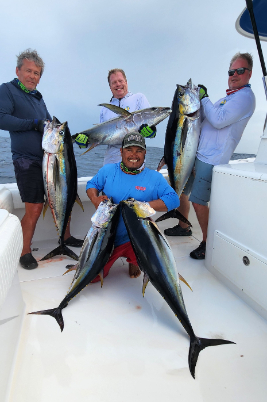 Big pods of Porpoises, with the Yellowfin Tuna in tow, really start to move up into the Gulf of Chiriqui from offshore, herding schools of spawing bait. Other pelagic species such as Black/Blue Marlin, Dorado, Sailfish, and Wahoo all show up to get in on the feeding frenzy. The inshore fishing really starts to heat up as well. The nearshore seamounts and rocky coastlines near our island, and other island groups, light up with activity as the water cools down. Roosterfish, Almaco Jack, Cubera Snapper, Mexican Barred Pargo, Blue Trevally, and more are all regular catches these months.