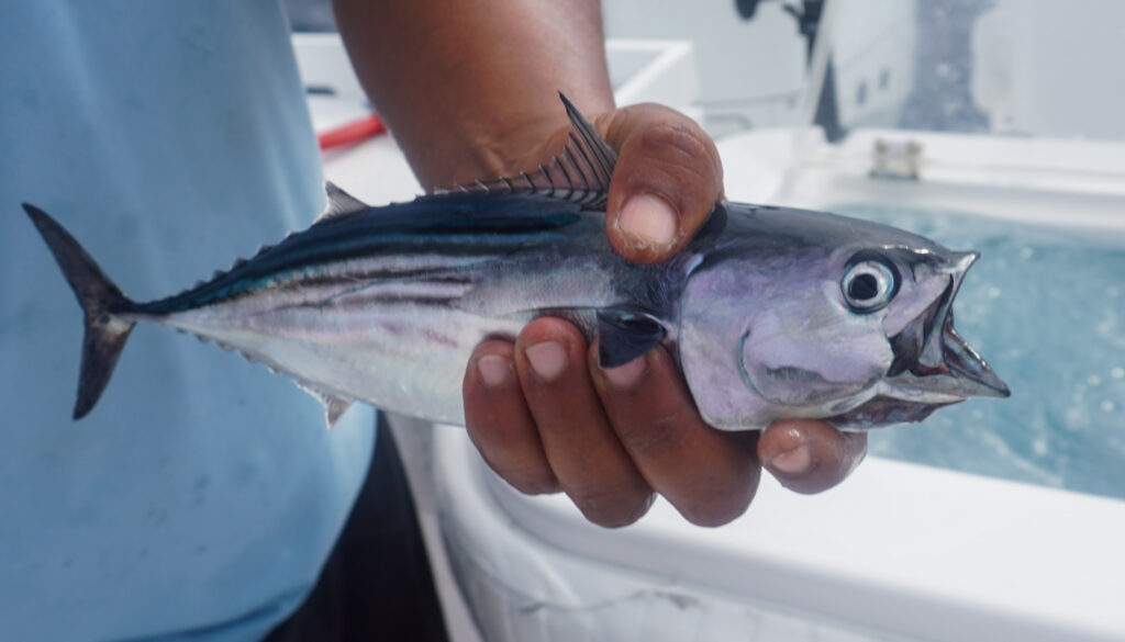 There is perhaps no better bait for big tuna than live bonito. We sometimes hang into big tuna when we’re live baiting for marlin. If there are big tuna around, we’ll deploy live bonito when we’re fishing for tuna with porpoise as well.