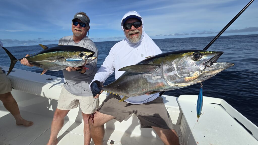 The yellowfin tuna fishing here can be incredible. We catch lots and lots of them. We also catch some true giants—a 290-pounder in February 2025, among many, many others.