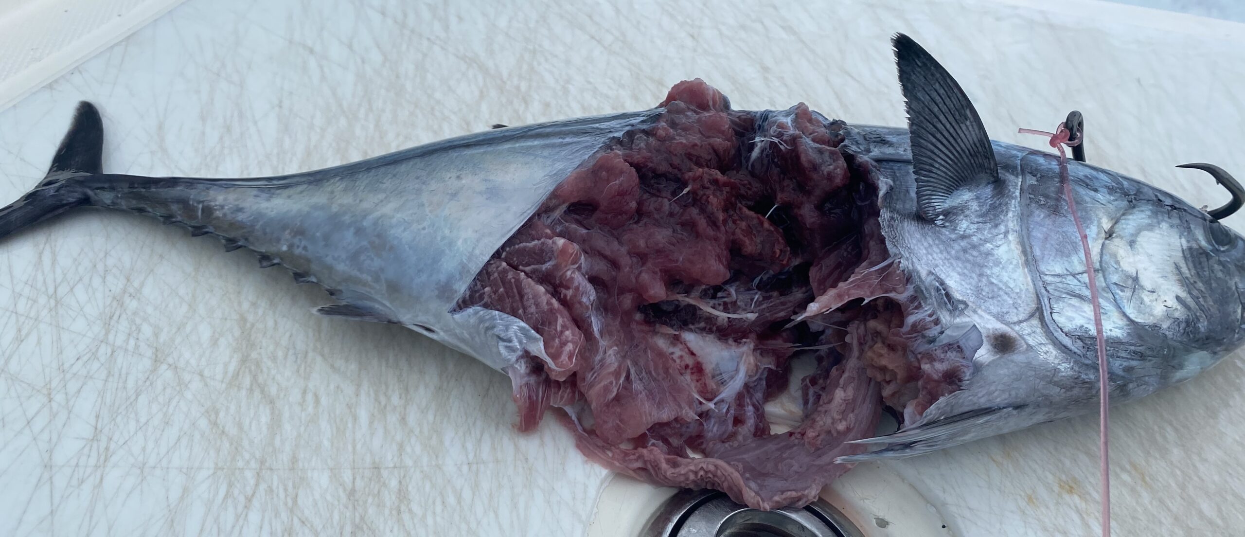 Bonito would die rapidly were you to place them in a standard bait tank. In tuna tubes, bonito may live for hours—especially if they were not hooked deeply. If a bonito comes up bleeding or is hooked bad, you may notice the crew keep it separate. Dead bonito make great snapper bait…