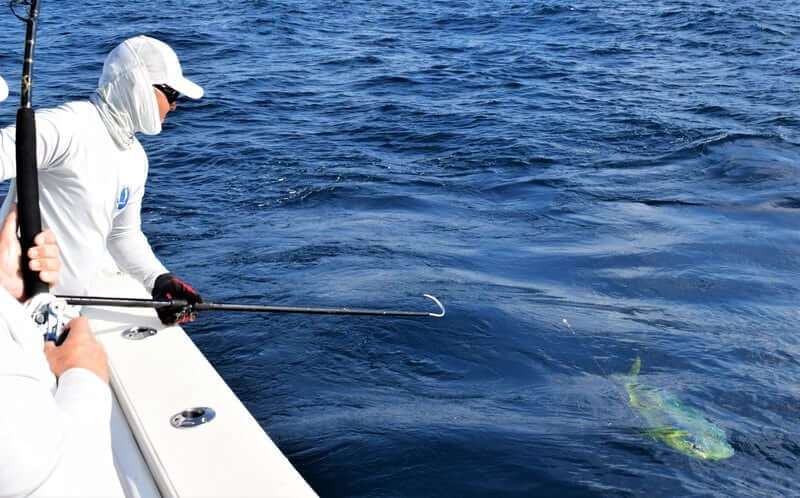 On a big fish or after a protracted battle, the crewman might begin leadering the fish as soon as he can reach the wind-on. For a marlin release to be official, the mate must touch the leader or the double line (the end of the mainline is tied into a bimini twist—the bimini twist forms a loop that connects to the loop in the wind-on leader) must touch the rod tip.